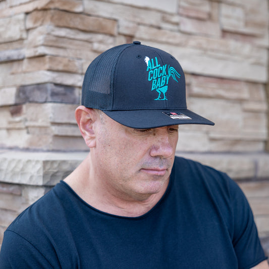 Black Signature ACB Trucker Hat – Sea Green Embroidery with White Comb